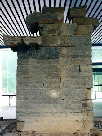 觀星臺南側(cè)的周公測景臺是古代祖先測量日影、驗(yàn)證時(shí)令季節(jié)的儀器。分臺座和臺柱兩部分,臺座叫圭,臺柱叫表。夏至日這一天的正午,在測景臺的周圍看不到表的影子,所以,稱此臺為無影臺。又因?yàn)闊o影,我們的祖先就認(rèn)為這里就是地中。