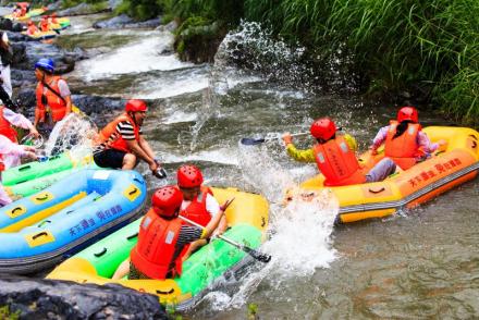 豫西大峽谷漂流----豫西大峽谷斥資近億元打造的國(guó)內(nèi)頂級(jí)漂流,集“巖洞漂流、暗河漂流、峽谷漂流、瀑布漂流、回旋漂流”五大特色于一體,漂流河全程6公里,穿越3處穿山巖洞,經(jīng)過(guò)2處回旋漂流,飛躍白龍瀑、九曲瀑、大淙瀑。從起漂碼頭到第一級(jí)渡口,約有一公里的平緩水域,水勢(shì)潺湲。其后水流順勢(shì)而下,則由不得你不瘋狂,不尖叫!漂流河道時(shí)而平緩安靜、波光粼粼如掩面嬌羞的少女;時(shí)而飛流直下,偏偏輕舟瞬時(shí)激起千層白浪,倏然之間,乖順的輕舟突然間就成了桀驁不順的烈馬,肌肉緊繃,左沖右撞。尖叫之聲隨之響徹于山谷之中,但卻動(dòng)聽如天籟之聲。