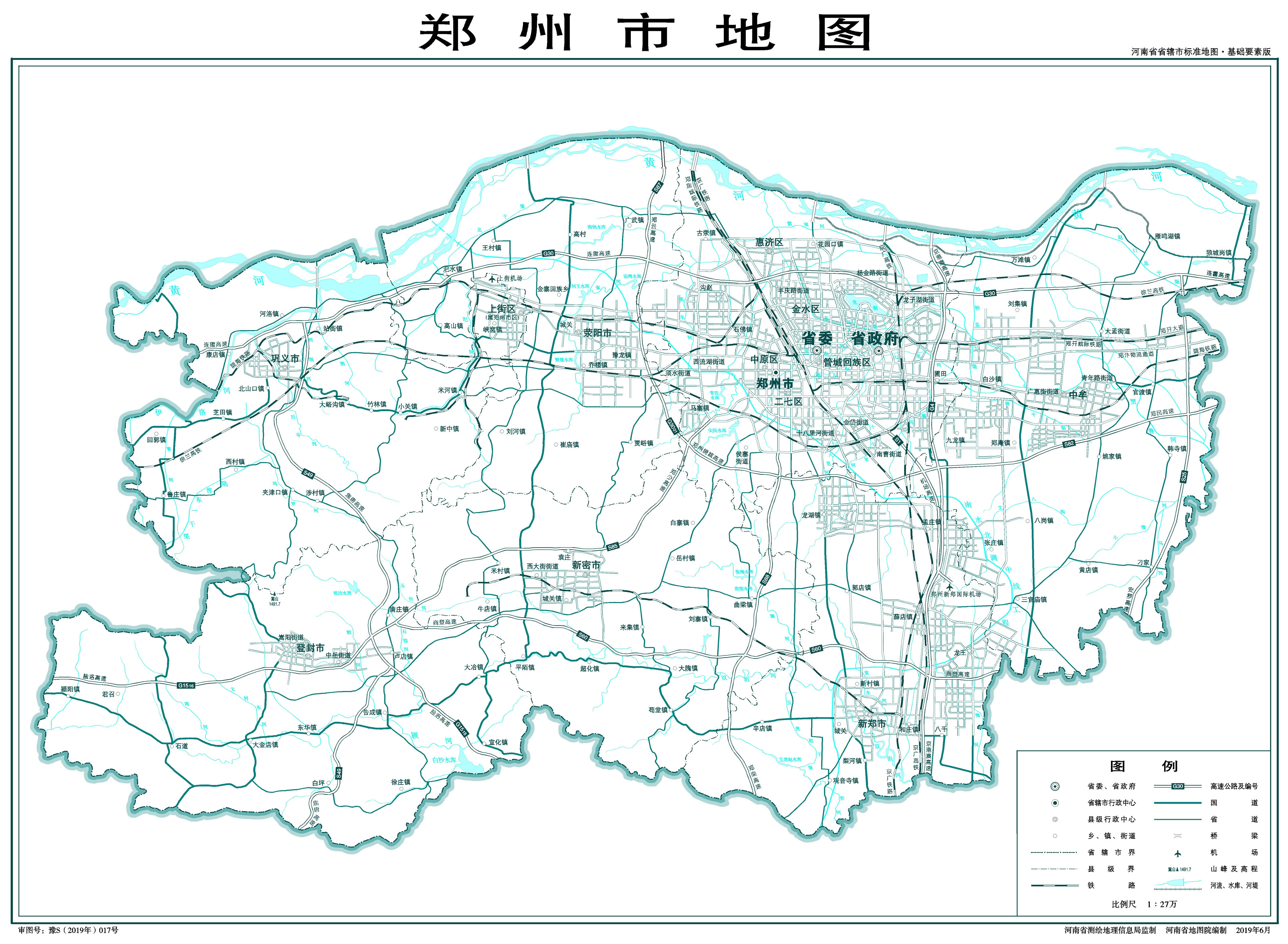 鄭州市轄6個市轄區(qū)、1個縣,代管5個縣級市:
