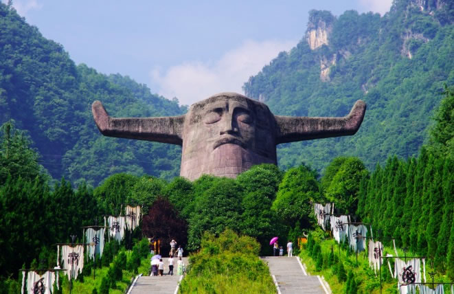2002年通過國家質量ISO9001和ISO 14000體系認證,被評為國家4A級景區(qū),建成于1997年,是神農(nóng)架一個自然和人文相結合的景區(qū)。景區(qū)有特色地分為四個部分:古老植物園、千年杉王、神農(nóng)祭壇、購物長廊。祭壇內神農(nóng)塑像高大雄偉,莊嚴肅穆,雙目微閉,似乎在洞察世間萬物。它以大地為身軀,頭像高21米,象征中華民族在21世紀蒸蒸日上,寬35米,與它的高加起來共56米,象征著56個民族的大團結。祭壇外圍的五色石代表著五行,即金、木、水、火、土,內方外圓,即有天圓地方之意。祭壇的兩側用八組壁畫記錄著遠古神農(nóng)氏的功德,即降牛以耕、焦尾五弦、積麻衣葛、陶石木具、原始農(nóng)耕、日中為市、穿井灌溉。八組壁畫以藝術的手法敘述了神農(nóng)氏的豐功偉業(yè),表達了子孫們的無限追戀。
