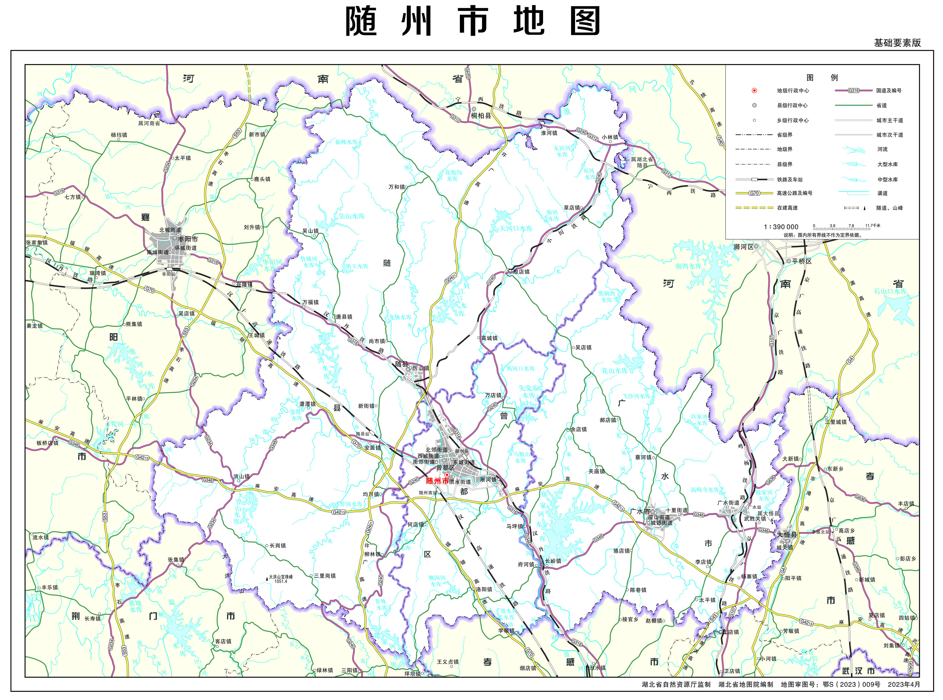 隨州市轄1個(gè)區(qū)、1個(gè)縣、代管1個(gè)縣級(jí)市: