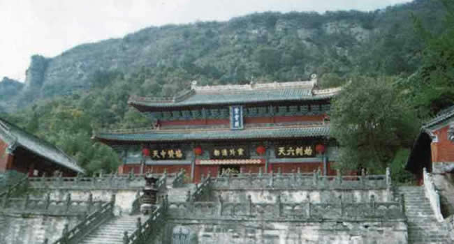 紫霄宮:建于明永樂(lè)十一年(公元1413年),原建宮殿、廊廡、齋堂、亭臺(tái)等860多間,賜額“太元紫霄 宮”。紫霄宮背依展旗峰;面對(duì)照壁、三臺(tái)、五老、蠟燭、落帽、香爐諸峰;右為雷神洞;左為禹跡池、寶珠峰。周?chē)綆n天然形成一把二龍戲珠的寶椅,明永樂(lè)皇帝封之為“紫霄福地”。