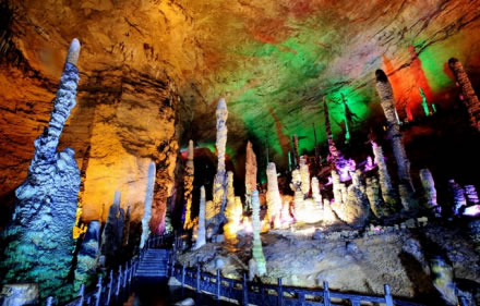 黃龍洞位于湖南省張家界市核心景區(qū)武陵源風景名勝區(qū)內(nèi),是世界自然遺產(chǎn)、世界地質(zhì)公園武陵源的有機組成部分,屬典型的喀斯特巖溶地貌,以其龐大的立體結(jié)構(gòu)洞穴空間、豐富的溶洞景觀、水陸兼?zhèn)涞挠斡[觀光線路獨步天下,被列為國際旅游洞穴會員、全國35個王牌景點之一、中國首批AAAA級旅游景區(qū)、中國旅游首批知名品牌、中國馳名商標、湖南省最佳旅游景區(qū)、張家界旅游精品線之一,享有“世界溶洞奇觀”、“世界溶洞全能冠軍”之美譽,2005年被評選為“中國最美旅游溶洞”。