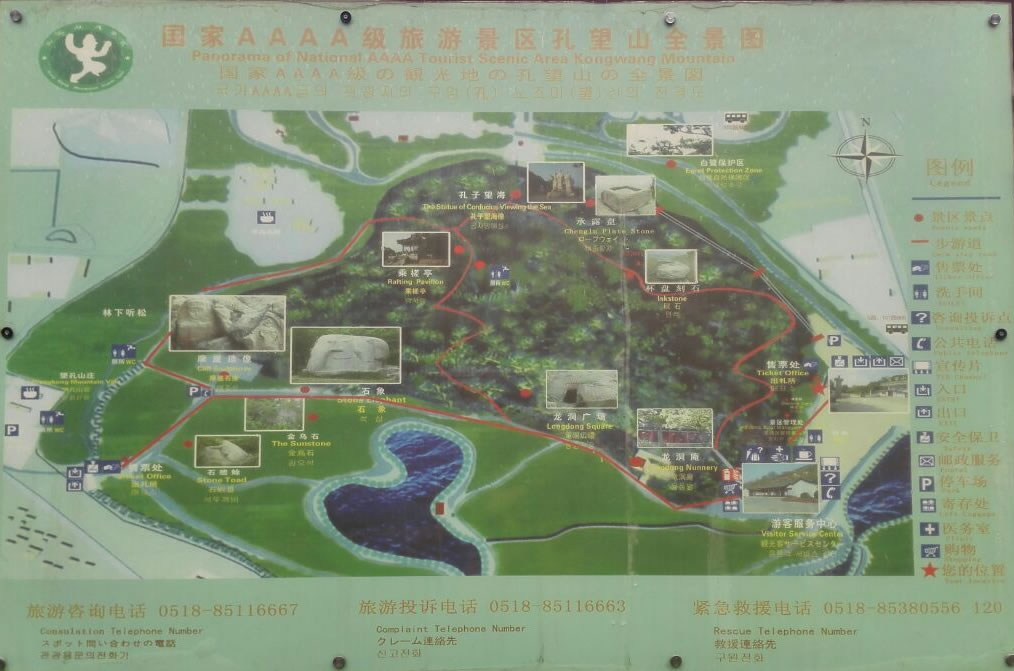 孔望山——位于江蘇省連云港市海州古城城東。孔望山正因為孔子登山望海,而成為中國文化史冊上的千年奇山。錦屏山東北麓,東西長800米,南北寬300米,海拔高度123米,傳說孔子曾登此山而望東海,故名孔望山。道家第七十一福地。唐時此山稱龍興山,南宋防金,又稱巡望山。以豐富的人文景觀而著稱,是國家級風(fēng)景名勝區(qū)、全國重點文物保護單位。