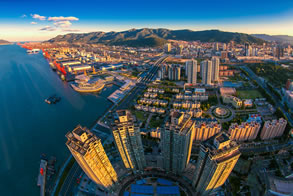 連云港港位于黃海之濱,中國沿海中部的海州灣西南岸,江蘇省的東北端,是中國沿海十大海港、全球百強集裝箱運輸港口之一,開通了50條遠近洋航線,可到達世界主要港口。港口北倚長6㎞的云臺山,為橫貫中國東西的鐵路大動脈——隴海、蘭新鐵路的東部終點港。與韓國、日本等國家主要港口相距在500海里的近洋扇面內,是江蘇最大海港、蘇北和中西部最經濟便捷的出?、新亞歐大陸橋東橋頭堡,以腹地內集裝箱運輸為主并承擔亞歐大陸間國際集裝箱水陸聯運的重要中轉港口,集商貿、倉儲、保稅、信息等服務于一體的綜合性大型沿海商港。