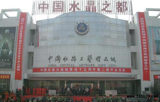 水晶制品,連云港市東?h是中國的“水晶之鄉(xiāng)”。這里水晶以白色為主,也有煙、茶、黃、粉紅和紫等諸色。還有晶體內(nèi)含有毛發(fā)狀的“發(fā)晶”,含草木狀的“草木晶”,含水珠的“水膽晶”。
