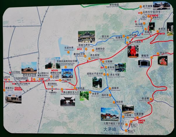 茅山,是環(huán)境優(yōu)美的風(fēng)景勝地。茅山自然風(fēng)光清新秀美,山區(qū)形勝獨(dú)特,枝繁葉茂,景色迷人,自古就有九峰、十九泉、二十六洞、二十八池之美景。這里的山不高卻秀雅,這里的水不深卻澄清。春游茅山,山林滴翠,草木芬芳。滿世界的嫩黃襯托這一處綠山,滿山間的野花給了這山林一路的狂想。薄霧輕如紗,夕陽(yáng)宛如畫。夏游茅山,綠樹成蔭,蔥蘢一片。你可以在綠樹掩映下的九曲十八彎上揮汗如雨,欲與大山試比高;你也可以朝觀日出,暮賞彩云。雨后初晴,但見一絲薄云在深谷幽林間繚繞,此時(shí)山上的樹木閃爍著猶如水晶般晶瑩的綠。秋游茅山,天高云淡,色彩斑斕。林間飄落一地的楓葉定會(huì)引起你無(wú)限的遐想,看蘆葦花在風(fēng)中搖曳著輕盈,聽喜客泉水叮咚暢響,感受生命在不經(jīng)意的平淡中輪回。冬游茅山,銀裝素裹,霧松飄情。抑或暖陽(yáng)普照,滿山林充斥著蓄勢(shì)待發(fā)的理想。萬(wàn)簌俱靜中聆聽那道家仙樂,大有“花飛佛地三千里,人在瑤池十二層”之感。