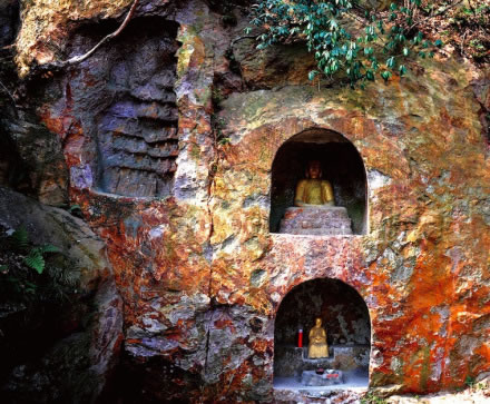 牛首山是一座佛教名山。梁代高僧寶志和尚曾對(duì)梁武帝說(shuō),牛首山是文殊菩薩的冬宮,相傳文殊菩薩曾領(lǐng)一萬(wàn)菩薩冬居于此;牛首山的第一座寺廟佛窟寺也修建于梁代(司空徐度);唐代時(shí),牛首山曾與西北之清涼、西南之峨嵋并稱(chēng)佛教三大名山 [1] 。幽棲寺始建于南朝劉宋大明三年(459年),是“南朝四百八十寺”中的早期著名廟宇;梁朝天監(jiān)二年(503年)司空徐度初建佛窟寺,南唐后主李煜更名為弘覺(jué)寺;唐代宗“曾夢(mèng)牛首山辟支佛來(lái)見(jiàn),”故有辟支塔。唐代,被譽(yù)為“東夏之達(dá)摩”的法融禪師在牛首山創(chuàng)立了牛頭禪宗,古稱(chēng)“江表牛頭”,牛頭禪宗的創(chuàng)立使印度禪真正蛻變?yōu)橹腥A禪起到了重要的橋梁作用,印順?lè)◣煹摹吨袊?guó)禪宗史》中認(rèn)為法融才是真正中國(guó)禪的建造者,“才是中華禪的根源”。
