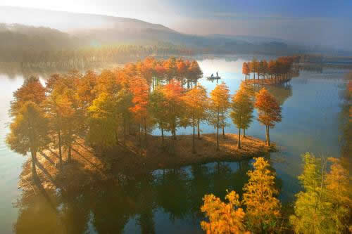 有山有水,山水相連,那才是旅游佳境。鐵山寺年降雨量在1000毫米以上,而山上的石頭又多為玄武巖,水順著石頭向山下流。涓涓細(xì)流匯集山澗,直奔天泉湖。天泉湖水域9平方公里,湖面開闊,輕霧迷朦。湖面四周層層山巒,近山濃翠,湖光山色交相輝映。湖水能見度可達(dá)十?dāng)?shù)米,常說水至清則無魚,這話用在天泉湖可謂相差甚遠(yuǎn)。天泉湖有百種魚,國家一級保護(hù)魚類“中華鱘”在天泉湖中試養(yǎng)成功。這里還建有大型養(yǎng)殖基地,盛產(chǎn)銀魚、鰱魚等。