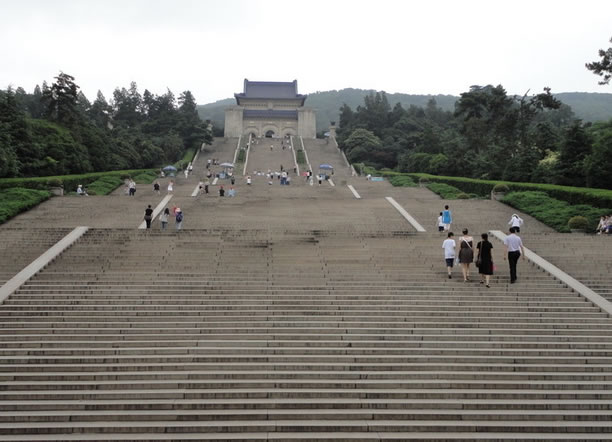 陵墓入口處有高大的花崗石牌坊,上有孫中山手書的“博愛”兩個(gè)金字。從牌坊開始上達(dá)祭堂,共有石階392級(jí),代表著當(dāng)時(shí)中國(guó)的三億九千兩百萬(wàn)同胞;8個(gè)平臺(tái),象征著三民主義五權(quán)憲法。臺(tái)階用蘇州花崗石砌成。