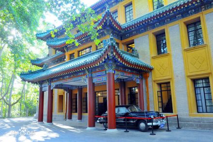 美齡宮是蔣介石及其夫人宋美齡下榻的別墅,正式名稱為“國(guó)民政府主席官邸”,有“遠(yuǎn)東第一別墅”的美譽(yù)。美齡宮主體建筑是一座三層重檐山式宮殿式建筑,頂覆綠色琉璃瓦。在其房檐的琉璃瓦上雕著1000多只鳳凰,是中國(guó)唯一一例。整座建筑富麗堂皇,內(nèi)部裝飾奢侈豪華,裝飾以旋子彩繪,特別是藍(lán)底云雀瓊花圖案出自工筆畫家陳之佛之手,獨(dú)一無(wú)二。四周林木藏盛,終年百花飄香。汽車可直抵宮門,樓底層為接待室、秘書辦公室等,二樓西邊是會(huì)客室、起居室,東邊是蔣介石、宋美齡夫婦臥室。