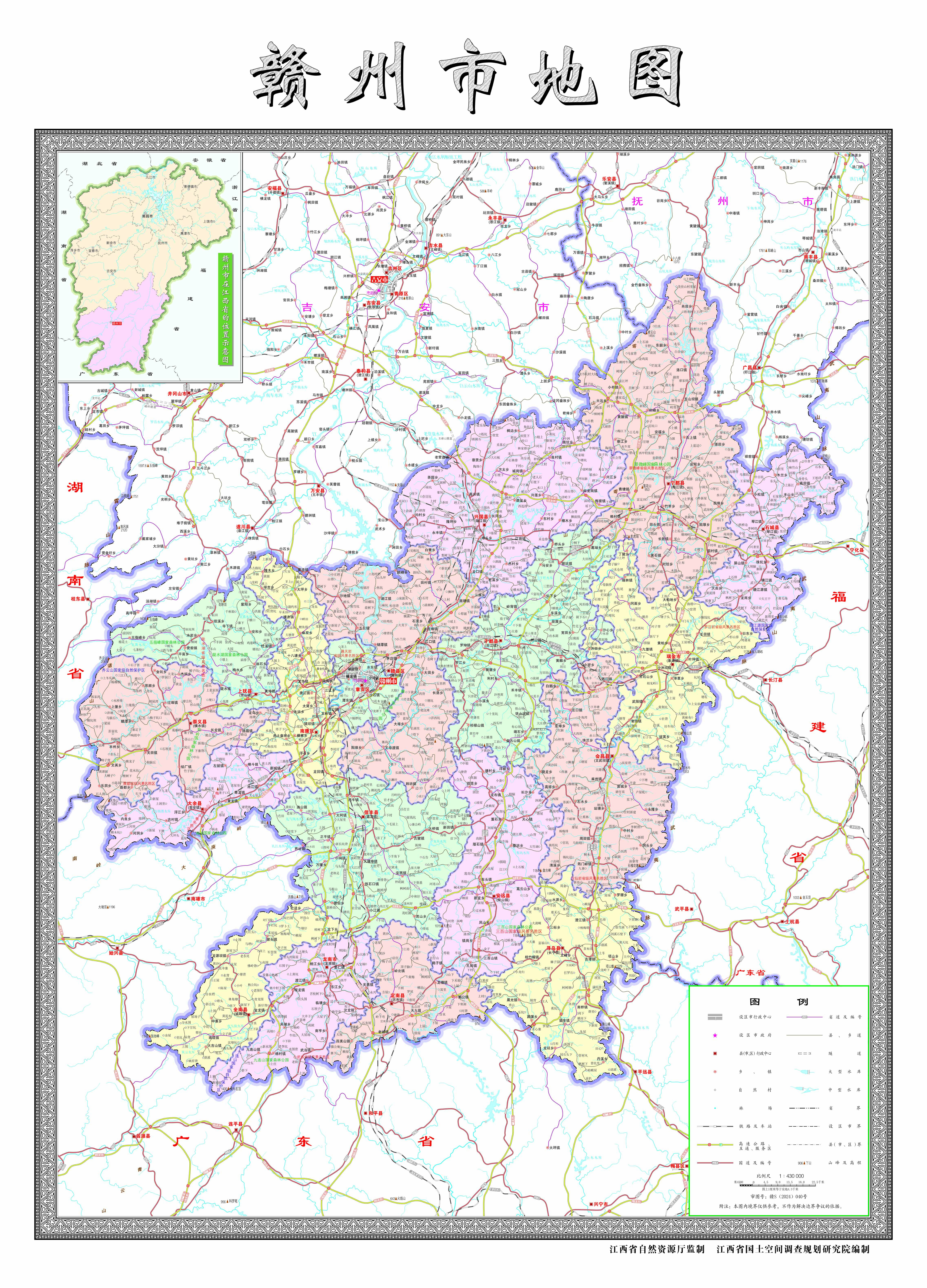 贛州市位于贛江上游,江西南部。東鄰福建省三明市和龍巖市,南毗廣東省梅州市、韶關(guān)市,西接湖南省郴州市,北連本省吉安市和撫州市?v距295千米,橫距219千米,全市總面積39379.64平方千米,占江西總面積的23.6%。距省會南昌市423千米,距首都北京市2021千米,距廣東省廣州市465千米,距臺灣海峽360千米。
