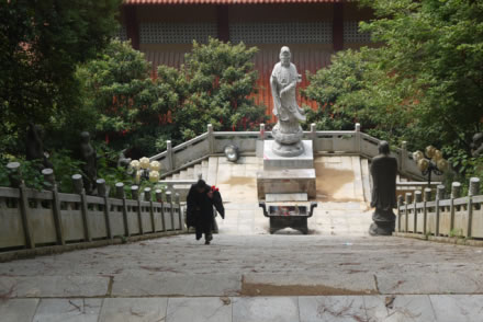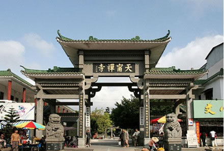 天寧古寺有過極盛的年華,隨著滄桑的變遷,屢經(jīng)摧殘,古寺蕩然無存。至1985年9月僅存一座高不到 二米、面積不足18平方米,風(fēng)雨飄搖的觀音間,神龕上只有一張圖像供游客參拜,當(dāng)年61歲的萬仁英同志,誠虔地來此剃發(fā)為尼,授法號叫釋順因,并將她多年的積蓄六千元贊助寺內(nèi)作經(jīng)費(fèi)。在古寺住持垂范下,用了七年時(shí)間,建成了一座氣派軒昂,規(guī)模宏偉的綜合性寺廟。建筑面積達(dá)五千平方米,屹立在灣里區(qū)南端,接待八方香客和游人。