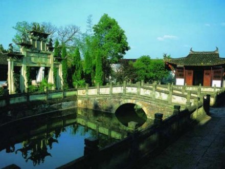 妙濟(jì)橋位于梅嶺景區(qū)內(nèi),呈灰白色,為單孔石拱橋,橋欄有十二根石柱,每個(gè)石柱頂?shù)窨讨恢华{子,形態(tài)各異,栩栩如生。此橋曾為木橋,清朝嘉慶丁丑年改建為石橋,橋碑上刻著“嘉慶丁丑”、“秋月吉旦”等字樣。