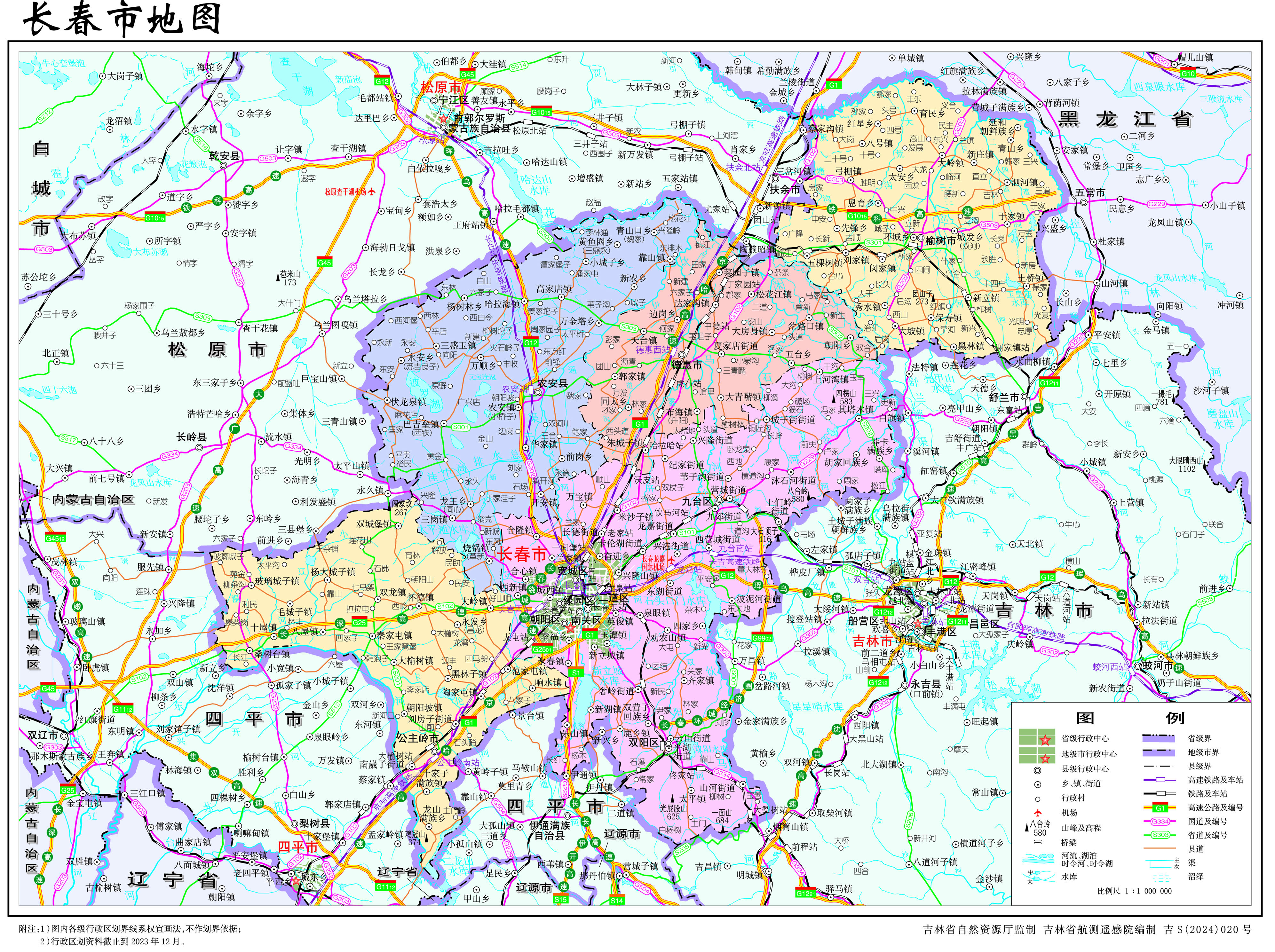 長春市轄7個市轄區(qū)、1個縣,代管3個縣級市: