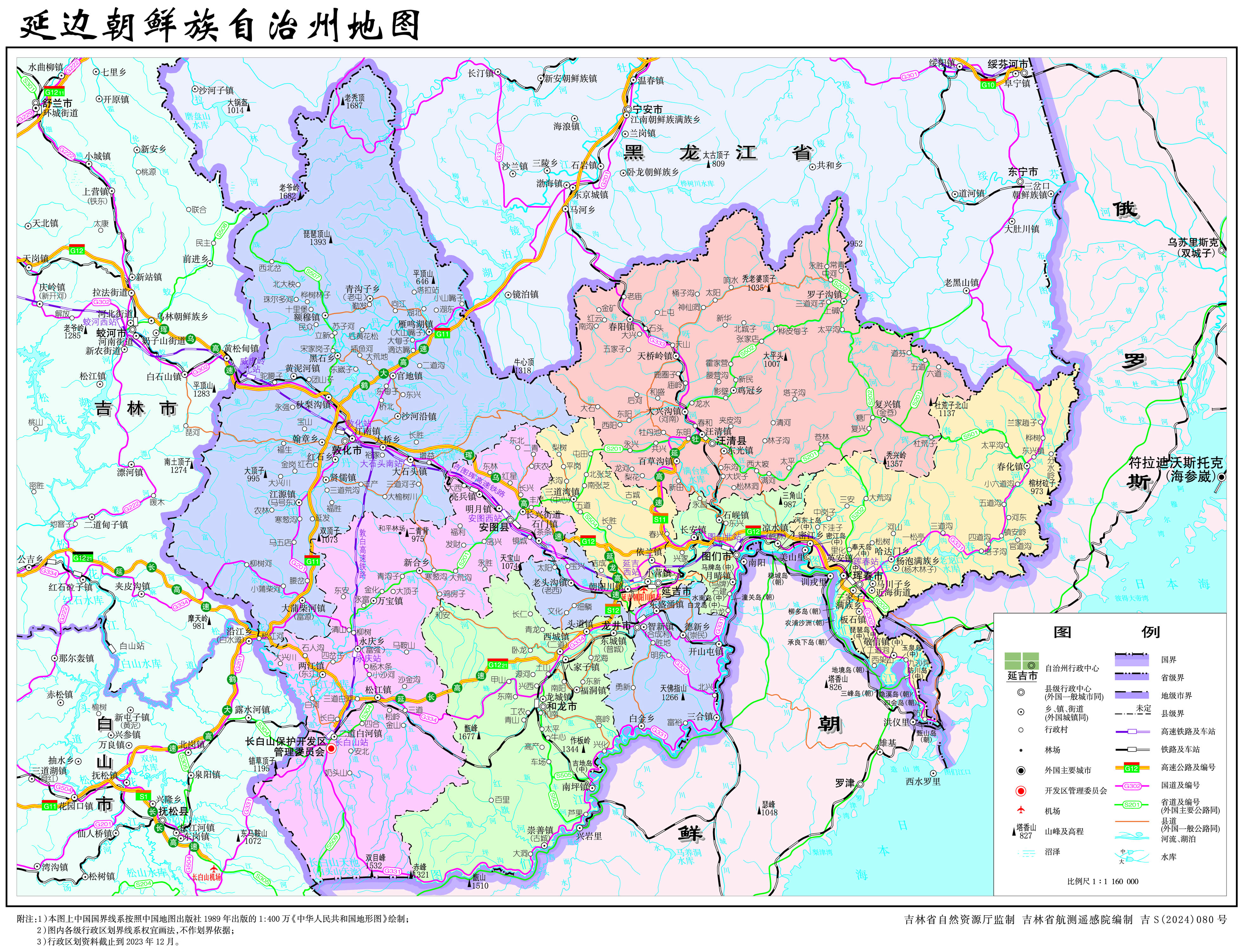 延邊朝鮮族自治州轄6個(gè)縣級(jí)市、2個(gè)縣:
