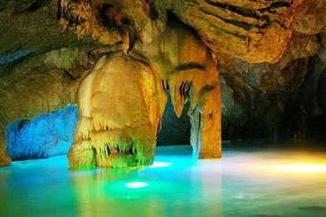 它們維妙維肖,形象逼真。特別是玉米塔、玉象和雪山三景,更是名實相符,幾可亂真。銀河兩岸鐘乳林立,石筍如畫,千姿百態(tài),光怪陸離,洞頂空窿鐘乳高懸,晶瑩斑斕,神趣盎然,沿河景點(diǎn)達(dá)100余處,千姿百態(tài),各具特色,泛舟其中,如臨仙境,這是水與石渾然天成的神秘洞穴,是迄今世界上已發(fā)現(xiàn)的最長可乘船游覽的地下暗河。