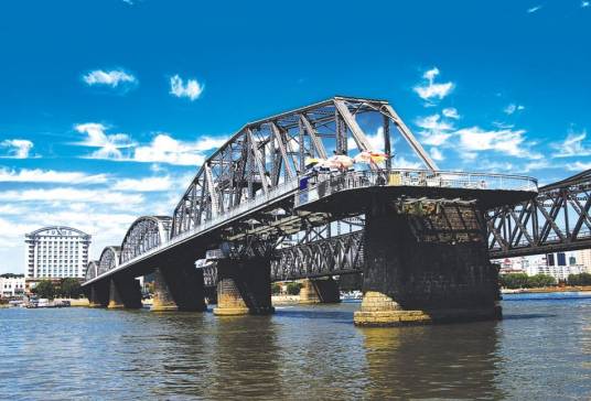 鴨綠江斷橋,位于中國遼寧省丹東市振興區(qū)江岸路鴨綠江畔,是原鴨綠江大橋被炸毀后的殘余部分,是國家AAAA級景區(qū)鴨綠江風(fēng)景名勝區(qū)重要的標(biāo)志性建筑。鴨綠江斷橋?yàn)?2孔可開閉式鐵路橋,橋長944.2米,寬11米,12孔,其中第4孔為“開閉梁”,可旋轉(zhuǎn)開合。