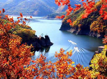月臺子景區(qū)是主要的楓葉觀賞區(qū),每年本溪都開楓葉節(jié)。楓葉節(jié)是本溪走向全國、走向世界的橋梁,是本溪旅游事業(yè)蒸蒸日上的窗口。而關(guān)門山紅葉更是倍受贊譽,每逢秋季,萬山紅遍層林盡染,紅紅火火的楓葉也會讓您的思緒隨之蕩漾,讓您不由得想起這樣一首詩:蕭蕭淺絳霞初碎,槭槭深紅雨復(fù)燃,染得千秋林一色,還家只當是春天。伴隨著詩的優(yōu)美,我們到了月亮灣。2000年7月,我國著名的歌唱家彭麗媛曾經(jīng)到此拍攝音樂電視《世紀春雨》,這首歌曾在MTV大賽中榮獲金獎,大家隨著看到的就是森林浴場,您可以漫步林中,在石桌上小憩,在秋千上放歌,尋找兒時的樂趣。