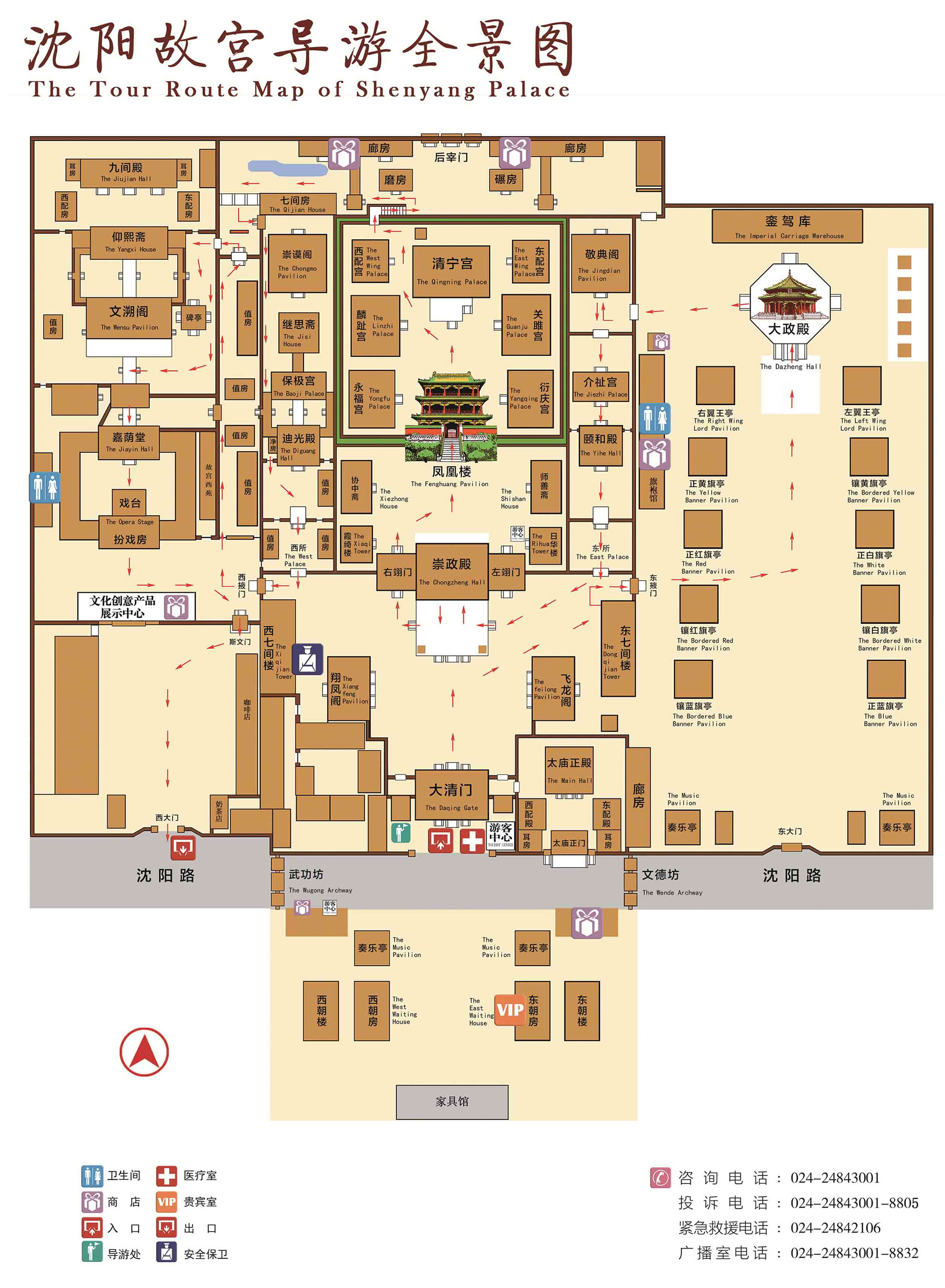 沈陽(yáng)故宮占地面積六萬(wàn)多平方米,有古建筑114座,500多間,保存完好。在宮廷遺址上建立的沈陽(yáng)故宮博物院是著名的古代宮廷藝術(shù)博物館,藏品中包含十分豐富的宮廷藝術(shù)品。