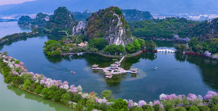 • 亮點(diǎn):以喀斯特溶巖地貌的巖峰、湖泊景觀為主要特色,包括天柱巖、玉屏巖、石室?guī)r等七座石灰?guī)r山峰,以及中心湖、仙女湖、里湖、青蓮湖和波海湖等五個(gè)湖泊。游客可在此欣賞到壯觀的巖峰和清澈的湖水,感受大自然的鬼斧神工。