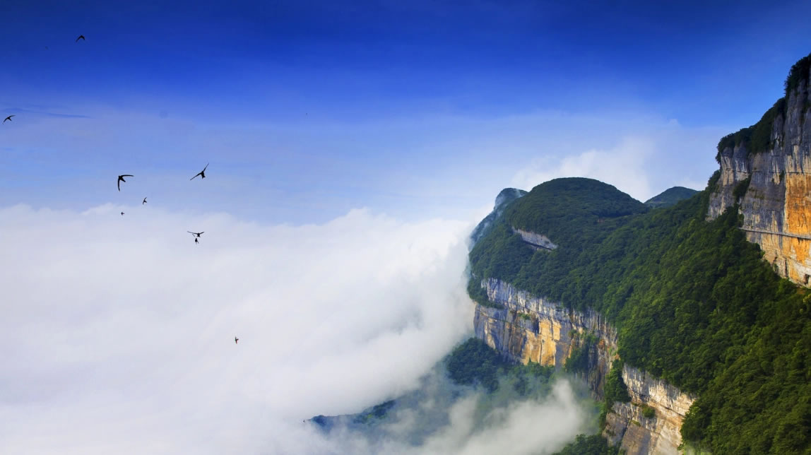 - 修建在懸崖峭壁上的棧道,行走其上,可俯瞰整個金佛山景區(qū),感受驚險與刺激。