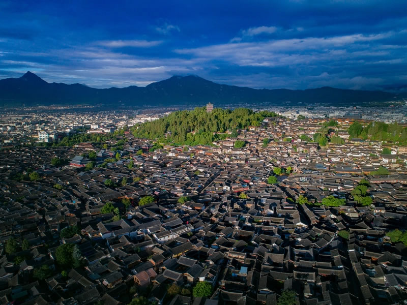 - 亮點(diǎn):12600個(gè)納西龍頭雕飾環(huán)繞,登頂可覽古城全景。