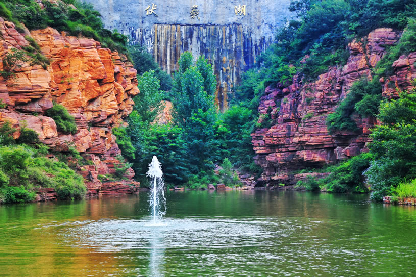 伏羲大峽谷位于河南省鄭州新密市西北20公里的伏羲山旅游區(qū)內(nèi),是一條以典型紅巖嶂谷群地質(zhì)地貌景觀為主的峽谷景區(qū)。伏羲山屬于嵩山山脈向東延伸部分,主峰五指嶺1108.5米,橫跨伏羲山全境。景區(qū)氣候溫潤,四季分明,年均溫11.6℃,比市區(qū)低2.7℃;景區(qū)植被茂密、物種繁多、綠樹掩映、花木扶疏,有千年以上的古樹名木數(shù)十棵,其中具有“活植物化石”之稱的古亢樹,是伏羲山特有的樹種。景區(qū)終年流水不斷,谷底飛瀑、跌水、深潭、平湖,清幽涼爽,姿態(tài)萬千,風景秀美,巨大的巖石像被打磨過似的,平坦如鏡,潔凈光滑,游客可以在這里享受世間少有的“巖石浴”;峽谷兩岸巖石兀立,巖壁上天然石梯懸于空中,形形色色的人物以及動物的形象惟妙惟肖?傄(guī)劃面積共5.3平方公里,以伏羲文化和紅石大峽谷為主要特色,分為上下兩部分:上部以臥龍臺、文化隧道、望鄉(xiāng)臺、八卦臺、萬年栗、栗仙神祠、女媧補天處、神龜折足、五色石等景點為主,全面反映伏羲文化的形成、發(fā)展、傳播以及對后世的影響;下部以黃龍?zhí)、黃龍廟、簸萁潭、立龍鍋潭、貫云瀑(龍影瀑)、八分潭、烏龜拜壽、九龍?zhí)、圖騰柱、馬蹄溝、沐云梯、等景點為主,深切感受峽谷風光,體驗自然鬼斧神工。