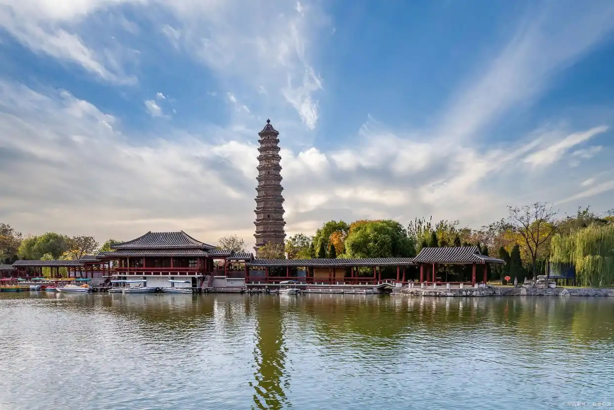 - 特色:以現(xiàn)存最古老的琉璃磚塔“開封鐵塔”為核心,融合宋代園林美學與佛教文化,被譽為“天下第一塔”。鐵塔高55.88米,八角十三層,遍體通徹褐色琉璃磚,仿木構建筑風格,歷經(jīng)37次地震、18次大風、15次水患仍巍然屹立。