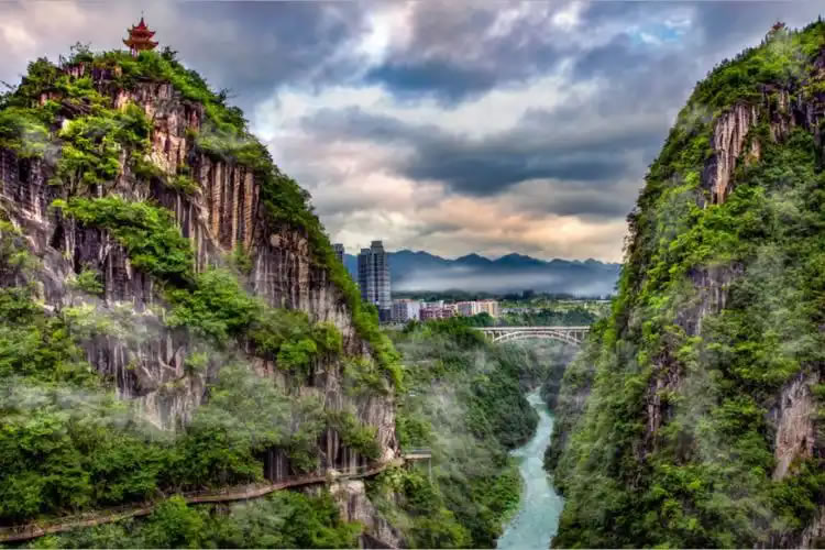 - 懸崖棧道:沿絕壁修建,可俯瞰阿蓬江蜿蜒,遠眺黔江城與峽谷綠意交融,感受“城在峽谷上,峽谷在城中”的奇景。