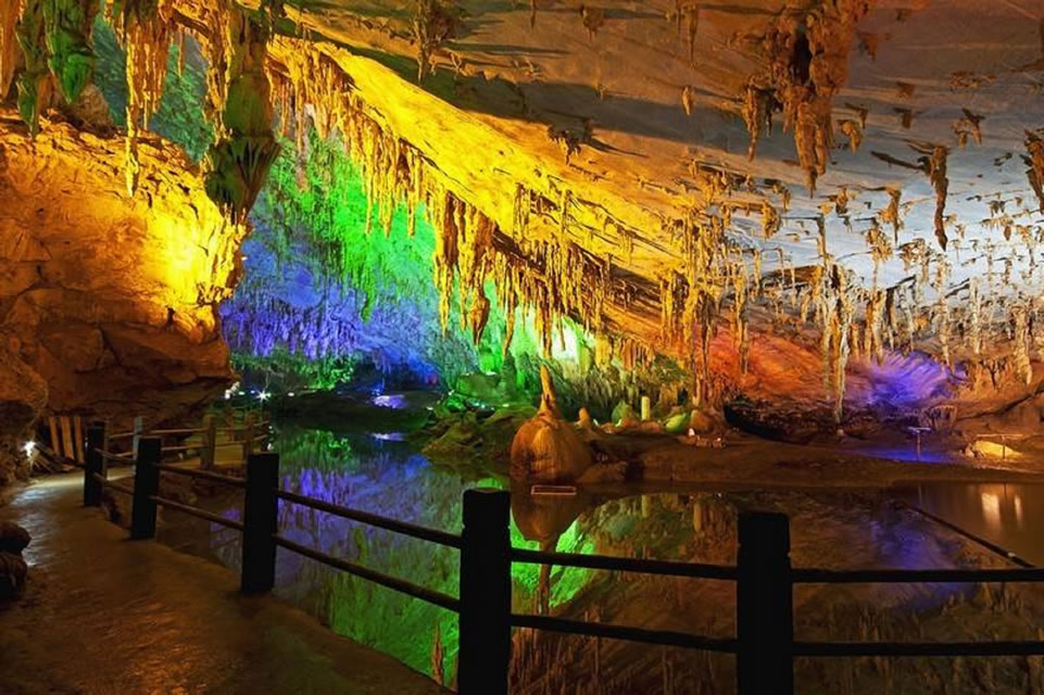 - 特色:中英聯(lián)合洞穴考察隊探測發(fā)現(xiàn),以棕櫚狀石筍、天河倒影、金倫石林等景觀聞名,常年恒溫20℃,適合四季游覽。