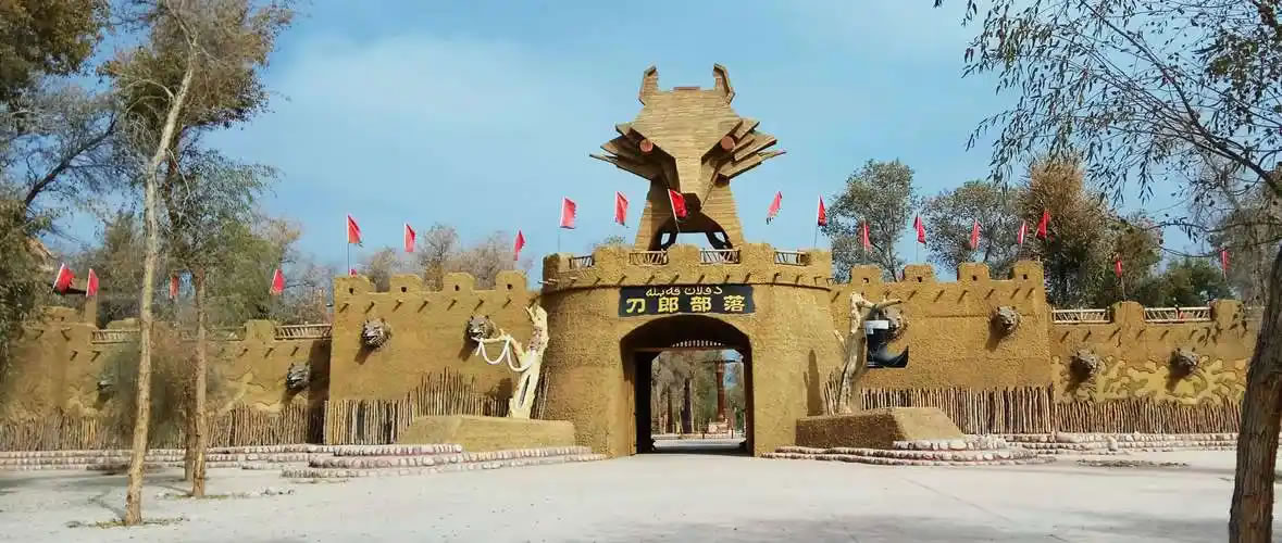 刀郎部落,位于新疆維吾爾自治區(qū)阿克蘇地區(qū)阿瓦提縣玉滿閘口胡楊林區(qū),距阿克蘇市58公里、縣城18公里,占地面積8300畝。景區(qū)以5000余畝千年原始胡楊林為生態(tài)背景,完整呈現(xiàn)刀郎人建筑、飲食及民俗文化,集中展示刀郎木卡姆、刀郎麥西熱甫等8項(xiàng)國(guó)家級(jí)和自治區(qū)級(jí)非物質(zhì)文化遺產(chǎn),其中“刀郎演唱組合”保持著最大年齡民間歌舞組合的大世界基尼斯紀(jì)錄。核心功能區(qū)包含民俗展館、千年胡楊區(qū)、鴕鳥(niǎo)養(yǎng)殖園區(qū)等七大板塊,復(fù)原刀郎人傳統(tǒng)居所與勞作工具,設(shè)有傳統(tǒng)手工藝作坊和勇士競(jìng)技場(chǎng),每日開(kāi)展刀郎麥西熱甫展演、民俗婚禮體驗(yàn)及摔跤、叼羊等傳統(tǒng)體育活動(dòng)。2025年入選非遺進(jìn)景區(qū)“五好”案例名單,通過(guò)非遺傳承人駐場(chǎng)表演、慕薩萊思釀造工藝展示及沙雕主題公園等特色項(xiàng)目,形成生態(tài)觀光與民俗體驗(yàn)深度融合的旅游模式。景區(qū)內(nèi)保留狩獵場(chǎng)景、農(nóng)民畫長(zhǎng)廊及高空輪轉(zhuǎn)秋千表演,配套沉浸式互動(dòng)體驗(yàn)和文創(chuàng)開(kāi)發(fā)體系,實(shí)現(xiàn)刀郎文化的活態(tài)傳承。