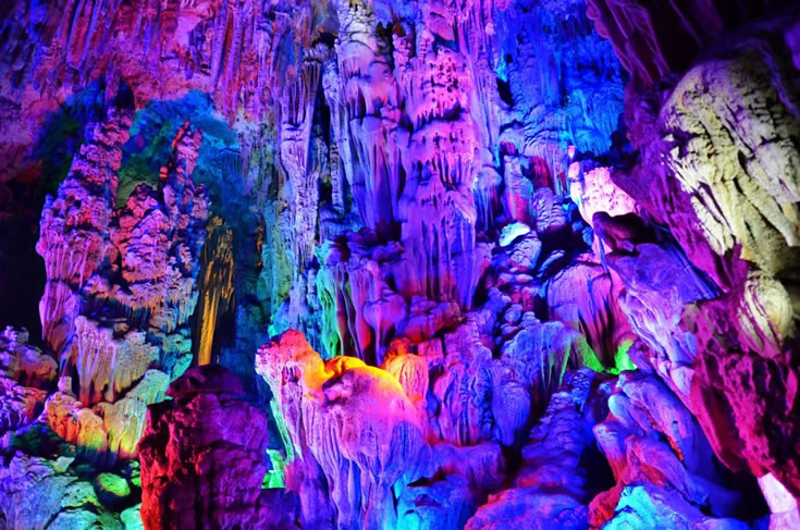 1. 天洞:宏大綺麗,以“東海龍宮”“通明宮”為代表,鐘乳石形態(tài)各異,燈光映襯下如夢(mèng)如幻。