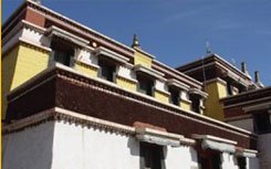 現(xiàn)存六大經(jīng)堂為蘇古沁殿、洞科爾殿、卻伊日殿(顯教經(jīng)堂)、當(dāng)圪希德殿、阿會(huì)殿(密宗經(jīng)堂)、日木倫殿(菩提道學(xué)經(jīng)堂)等。蘇古沁殿為全寺集會(huì)誦經(jīng)之所。這些殿宇規(guī)模宏大,均為典型的藏式建筑群。殿內(nèi)塑像、壁畫、唐卡(卷軸佛畫)俱全,各殿各有特色,或立高達(dá)十米的釋迦牟尼銅像,或供高達(dá)九米的黃教始祖宗喀巴銅像,或護(hù)法金剛像,或供奉白度母和綠度母塑像等。三座活佛府邸在阿會(huì)殿的南面,其中洞科爾活佛府規(guī)模宏大,為第二世活佛熱西尼瑪于乾隆四十九年(公元1784年)所建。左右是接待多倫諾爾匯宗寺甘珠爾瓦呼圖克圖和章嘉國師而建造的兩座府邸。
