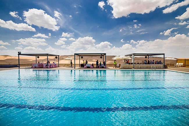 在沙漠中各種深淺的大型泳池里,以各種泳姿釋放自己——在沙丘起伏無(wú)際的沙漠里——在沙漠中屬于自己的水的世界里……累了,就躺在清爽的沙灘床上,美美地過(guò)上幾個(gè)小時(shí),同時(shí)可以與同行的人邊吃邊喝邊聊哦,別睡著了,演出一定會(huì)有的,悅沙島每天會(huì)有十多場(chǎng)不同的演出或比賽,是藝術(shù)的、是體育的……