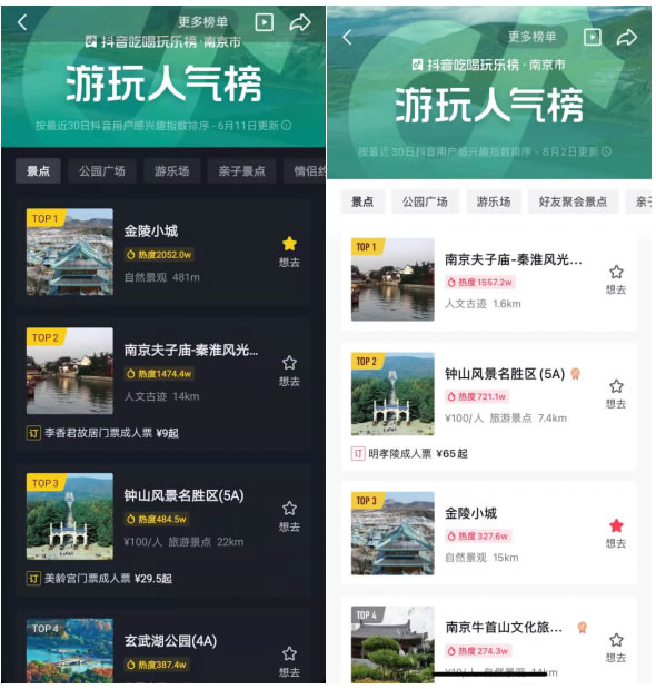 金陵小城的火爆,不僅體現(xiàn)在游客好評如潮,各大平臺的數(shù)據(jù)更能直觀的說明景區(qū)熱度。據(jù)了解,金陵小城開啟試運(yùn)營后便迅速成為抖音新晉網(wǎng)紅景點,在6月上旬迅速躥升為南京市游玩人氣榜TOP1,7月下旬仍然位居TOP3,推薦度高達(dá)96%。