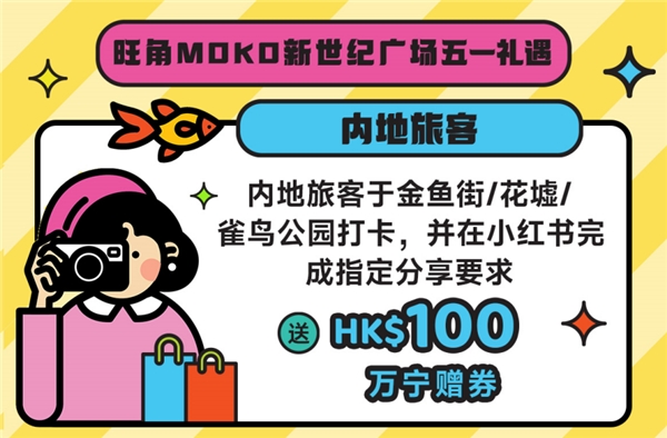 針對游客需求的變化,香港政府推出相關(guān)扶持政策,以支持區(qū)域特色打卡發(fā)展。以香港最著名的旅游區(qū)、購物區(qū)和美食區(qū)旺角為例,為了迎接內(nèi)地游客,香港政府在金魚街、花墟、雀仔公園設(shè)置不同打卡裝置。當(dāng)?shù)氐纳虉鲆餐ㄟ^各種舉措歡迎內(nèi)地游客。旺角地標(biāo)MOKO新世紀(jì)廣場面向內(nèi)地游客推出專享優(yōu)惠“日夜打卡繽紛禮”,于以上景點打卡分享到小紅書社交媒體及完成指定要求,可免費領(lǐng)取總值100港幣的萬寧贈券一份,一鍵PO出雙倍快樂。