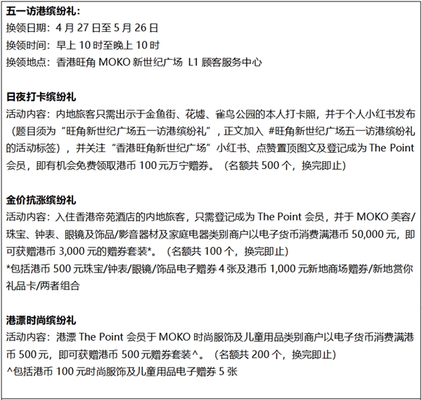 有關(guān)香港旺角MOKO新世紀(jì)廣場五一推廣活動詳情