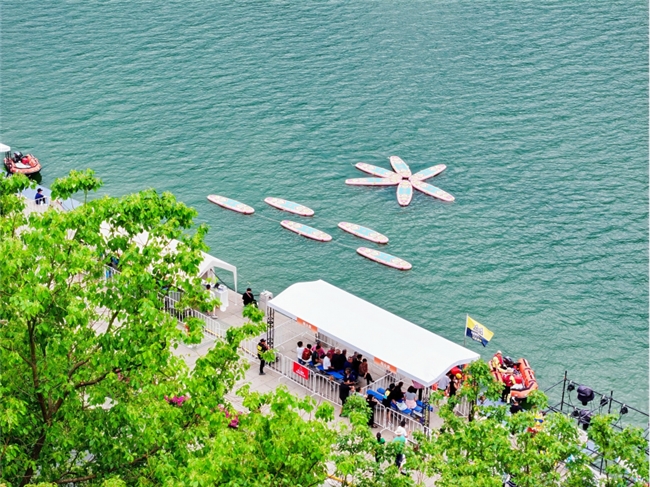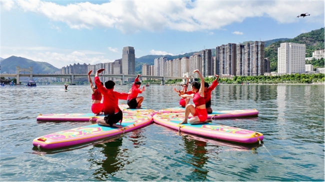 青田地處浙江省東南部,甌江中下游,山水資源豐富,水域總面積超100平方公里,水資源常規(guī)指標(biāo)遠(yuǎn)遠(yuǎn)優(yōu)于全國、全省平均水平,環(huán)湖綠帶鑲嵌著豐富的歷史人文景點(diǎn),湖岸城市風(fēng)光與大自然風(fēng)光融為一體,槳板與瑜伽擦出水上火花。