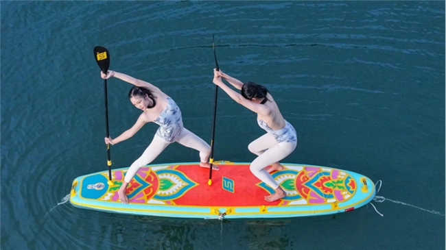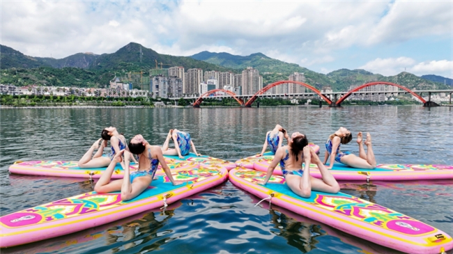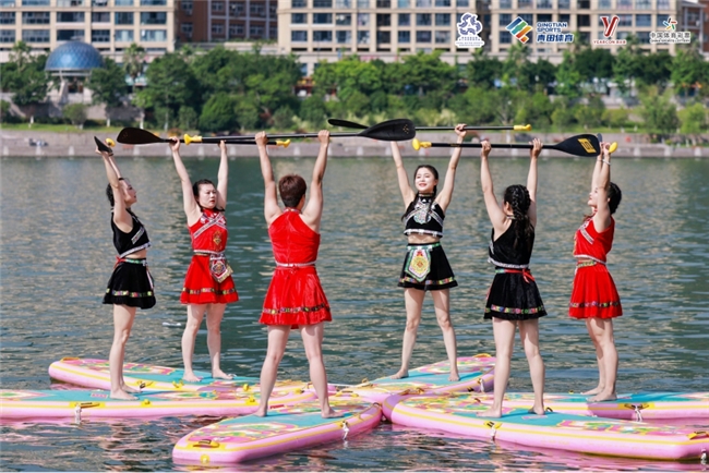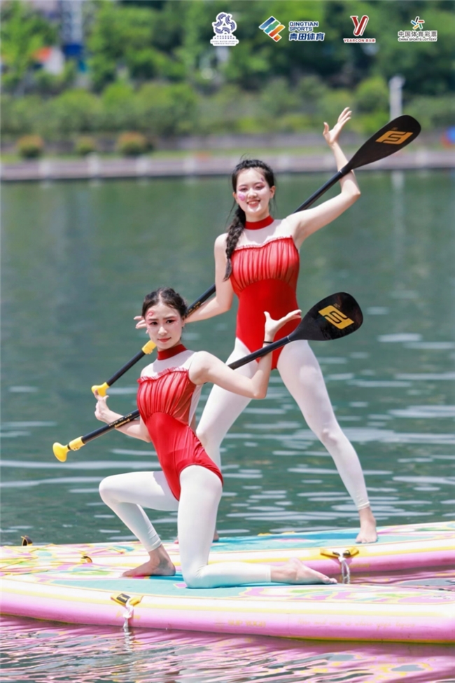 前屈、后彎、扭轉(zhuǎn)、平衡、倒置……音樂與動作和諧統(tǒng)一,身體與槳板融為一體。參賽隊(duì)員們展示的不僅是控制身體的力量,更是人與自然、美與健康的完美結(jié)合,圍觀群眾不時(shí)給予陣陣掌聲。