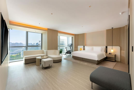 酒店所有的客房均配有健身器材及榮獲紅點(diǎn)設(shè)計(jì)大獎(jiǎng)的香薰睡眠燈,同時(shí)配備的華為客控系統(tǒng)全方位提升智能化服務(wù)體驗(yàn),也是華為客控系統(tǒng)應(yīng)用到酒店行業(yè)的全球首次嘗試。整個(gè)客房輕松自然的設(shè)計(jì)、親膚舒適的寢具及多感官的助眠體驗(yàn),從視覺(jué)、聽(tīng)覺(jué)等多方面為你營(yíng)造一個(gè)良好的舒睡環(huán)境,緩解旅途壓力。