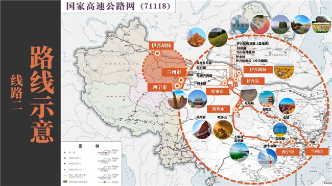 線路二“初遇新疆”線路則以“千年敦煌·萬年胡楊”——甘青新極致風光探索之旅為主題,該路線亮點為敦煌、青海湖、伊吾胡楊、自然風景觀光和民族文化體驗等。途經(jīng)蘭州、西寧、伊吾,跨越甘肅、青海、新疆三省。全程路線大約3,022.3公里