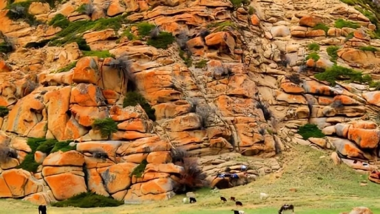 6.伊吾紅石峪(伊吾前山鄉(xiāng)北部山地中,背風坡的山地草原,有一片罕見的花崗巖山體,被凜冽的北風風化成丘陵狀,巨大的花崗巖則破碎成一個個的小塊,花崗巖破碎成類似于黃山飛來石的感覺。