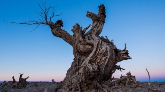三千年區(qū)域里的胡楊,就像一個個勇士在生與死的拉鋸戰(zhàn)中堅守,雖然每棵胡楊的筋骨已經(jīng)暴露,但是依然挺拔巍峨,奮力抗爭。
