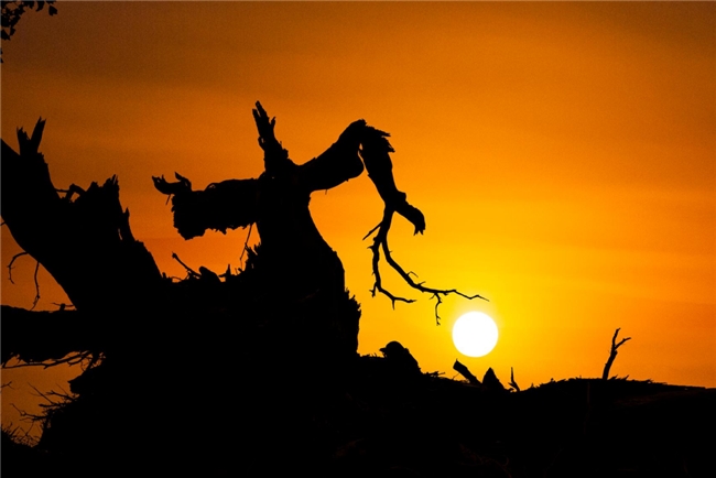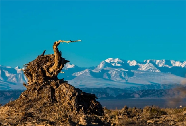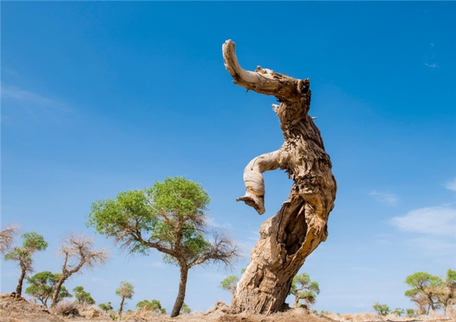 九千年胡楊,這里胡楊樹形也同樣奇特,有的胡楊猶如一頭大象,象鼻朝下吸水,象背馱著元寶自遠處而來,為游客帶來吉祥和財富;有的胡楊春萌新芽,夏葉婆娑,秋金滿地,冬蘊傲骨;有的胡楊就像古代的帝王莊嚴的祭祀著天地的生靈,祈求一方祥和,護佑一方安寧。
