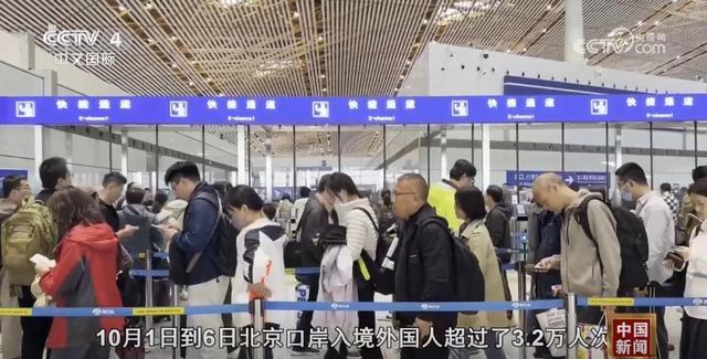 北京邊檢總站執(zhí)勤三大隊(duì)執(zhí)勤二隊(duì)副隊(duì)長(zhǎng)池尚琨稱:“10月1日到6日,北京口岸入境外國(guó)人超過(guò)3.2萬(wàn)人次,約是去年同期的2.14倍。”