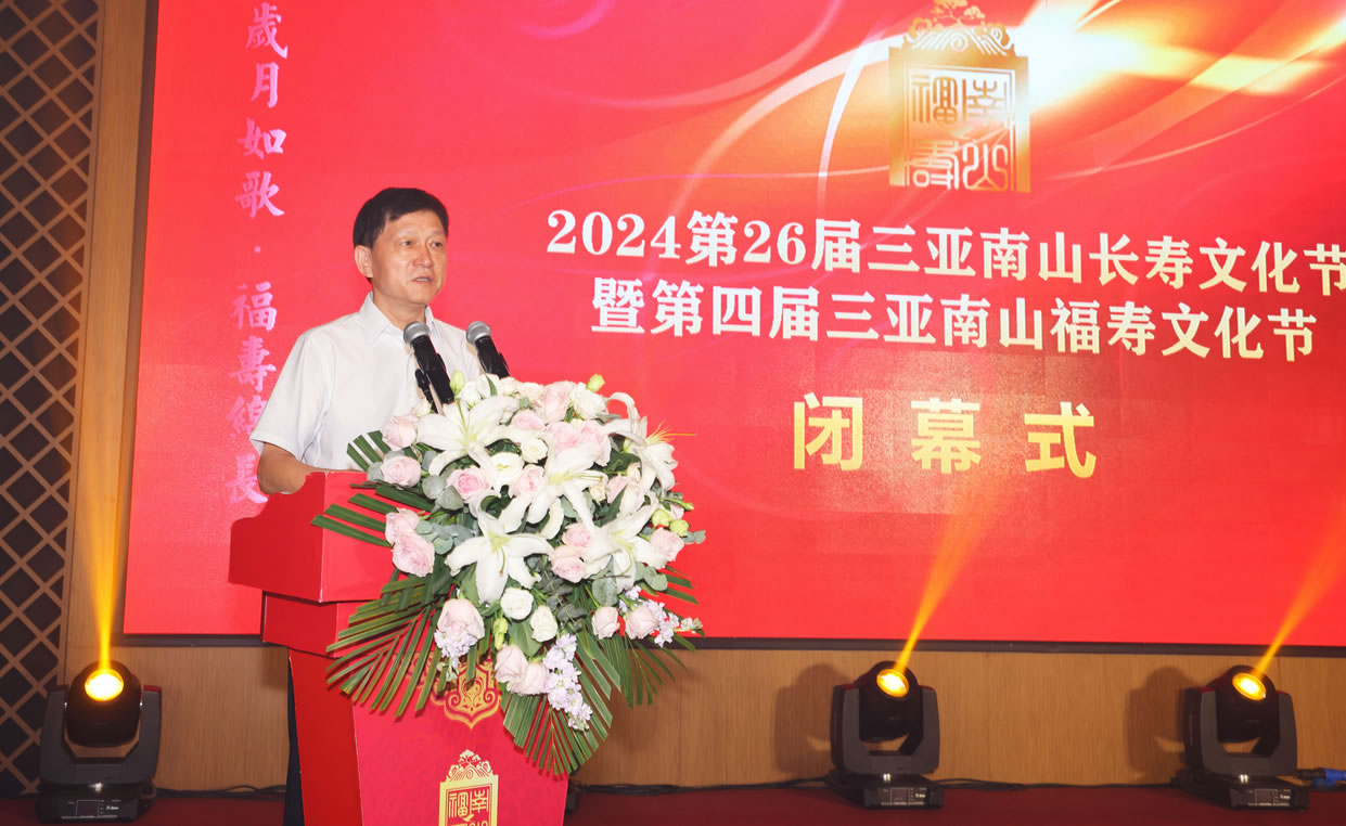 在閉幕式上,南山文旅公司總經(jīng)理劉春立致辭表示,今年“長(zhǎng)壽·福壽文化節(jié)”堅(jiān)持弘揚(yáng)中華優(yōu)秀傳統(tǒng)文化,傳承敬老愛(ài)老傳統(tǒng)美德,不斷踐行在文化領(lǐng)域探索創(chuàng)新,展現(xiàn)文化的新內(nèi)容、新風(fēng)采。三亞南山景區(qū)作為長(zhǎng)壽文化的重要傳承地,一直以來(lái)都致力于將長(zhǎng)壽·福壽文化融入景區(qū)的每一處細(xì)節(jié),我們通過(guò)一次次的活動(dòng),傳遞了長(zhǎng)壽文化的深刻內(nèi)涵,展現(xiàn)了南山福壽文化的獨(dú)特魅力。