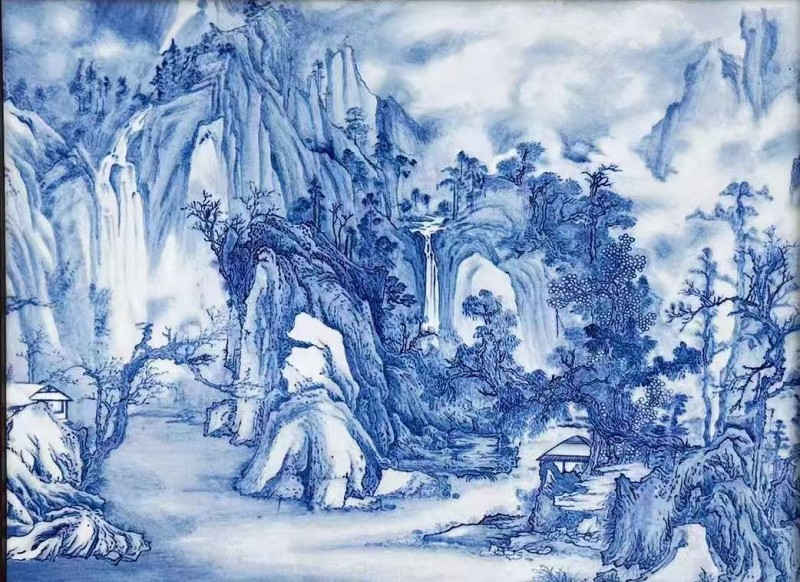 (瓷板青花-青山-作者-扎西卓瑪)