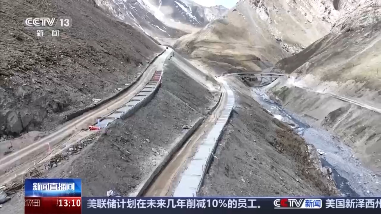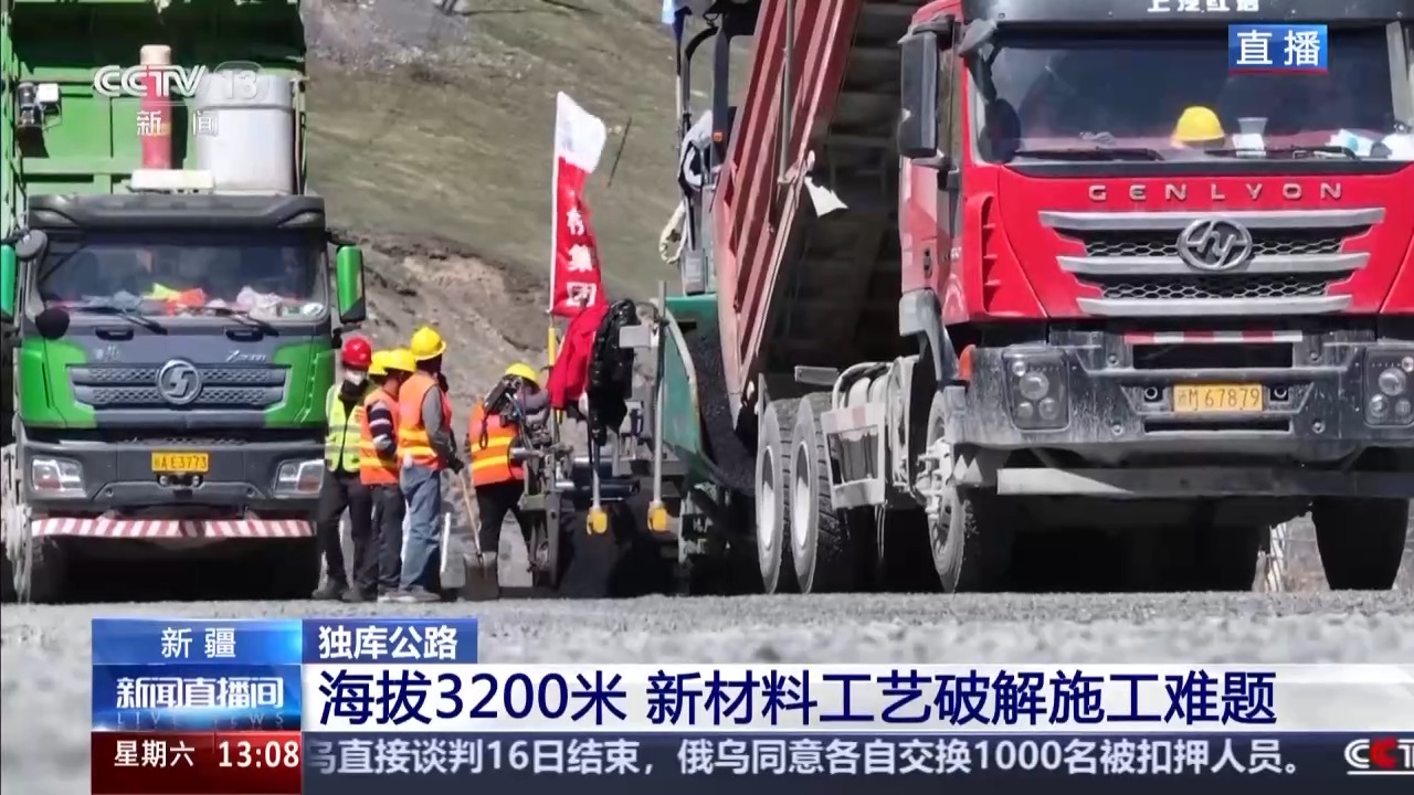 因為這里是高寒高海拔地區(qū),記者腳下的山體都是永久凍土層,氣溫變化凍土層會出現(xiàn)凍融的情況,凍融就是天氣冷就會凍住結(jié)冰,天氣暖和就會融化,凍融的出現(xiàn)會讓道路出現(xiàn)沉陷的情況。為了應(yīng)對這種凍土層,公路部門也是采取了一種新的試驗工藝,這種工藝看起來就和常見的水泥很像,但是這種新工藝具有輕質(zhì)、耐久的特點,適合在高原凍土鋪路。