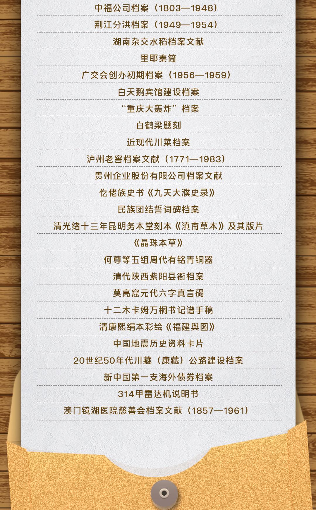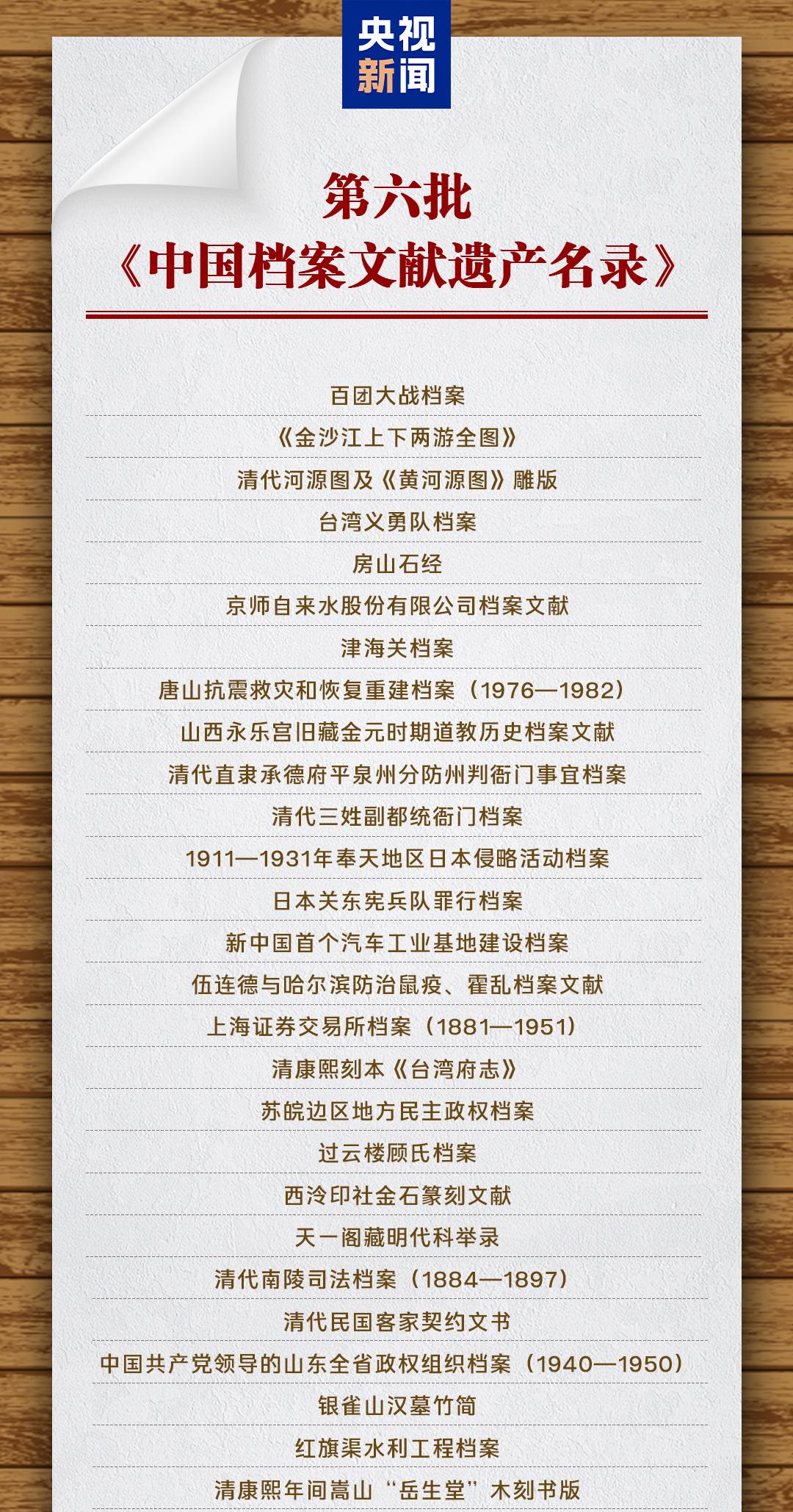 檔案局公布第六批《中國檔案文獻(xiàn)遺產(chǎn)名錄》